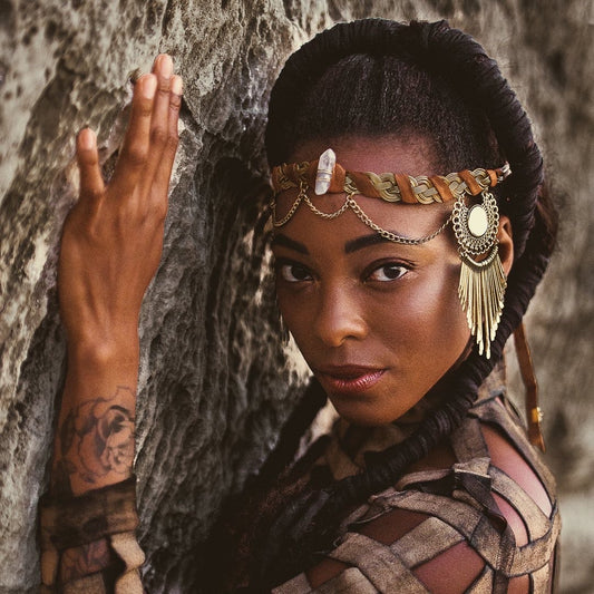 Tiaras, cadenas faciales y accesorios de cabeza hechos a mano que reflejan tu espíritu libre y tu conexión con la belleza interior.