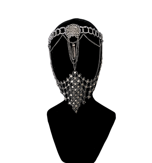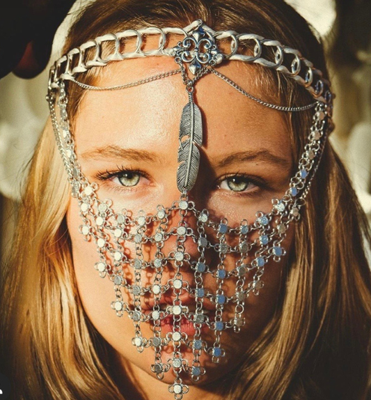 Tiara mascara plata / Joya mística geometría festival