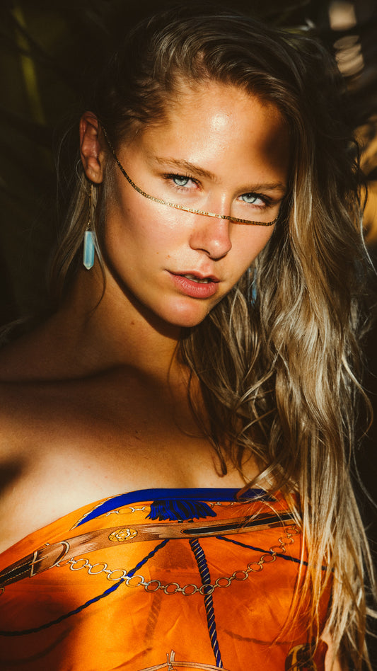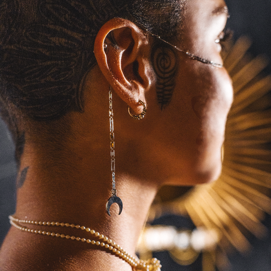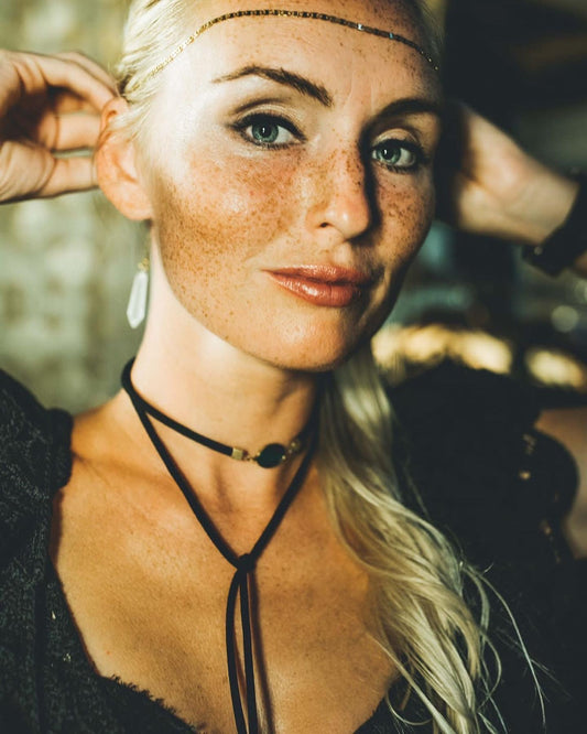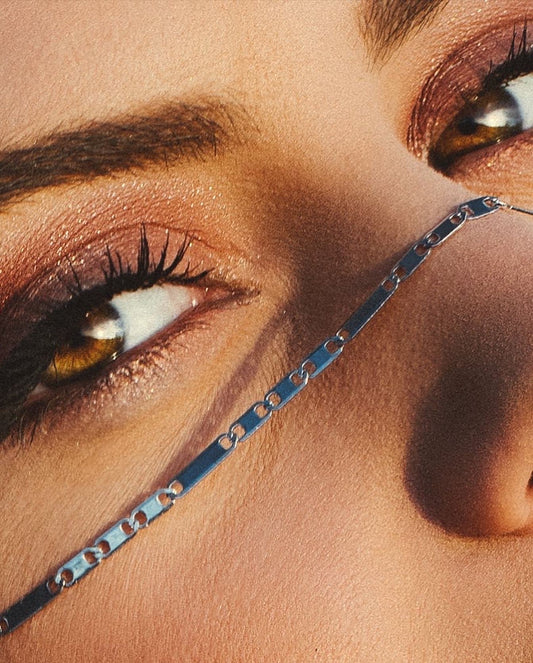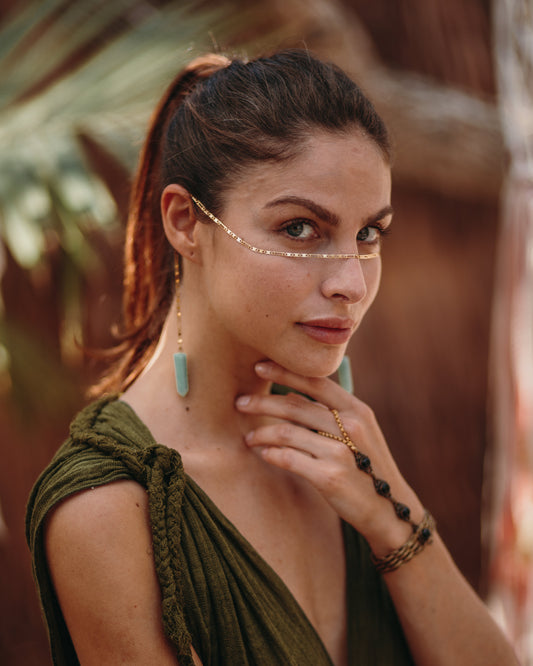 Cadena facial dorada con piedra de luna hexagonal hechas a mano de acero inoxidable bañadas en oro, con piedras semipreciosas.