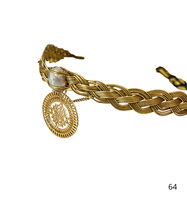 Tiara trenzada dorada boho/ Geometría y piedra lunar